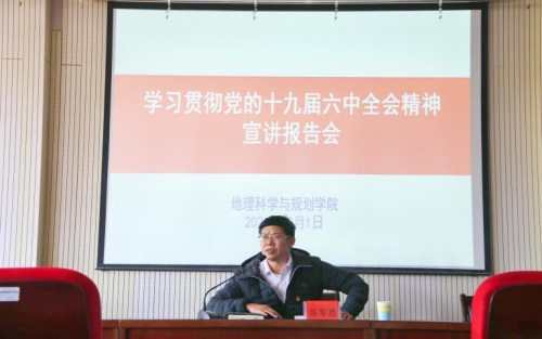 周萍副教授从“统一思想,凝聚共识”、“重大成就,历史经验”、“坚定信心,增强斗志”三个方面,结合自己的学习体会从唯物史观的角度、正确党史观的角度和现实意义的角度,引用了大量的历史事件,对党的十九届六中全会精神重点对《中共中央关于党的百年奋斗重大成就和历史经验的决议》做了重点阐述,对全院师生今后学习贯彻党的十九届六中全会精神具有非常强的指导意义。