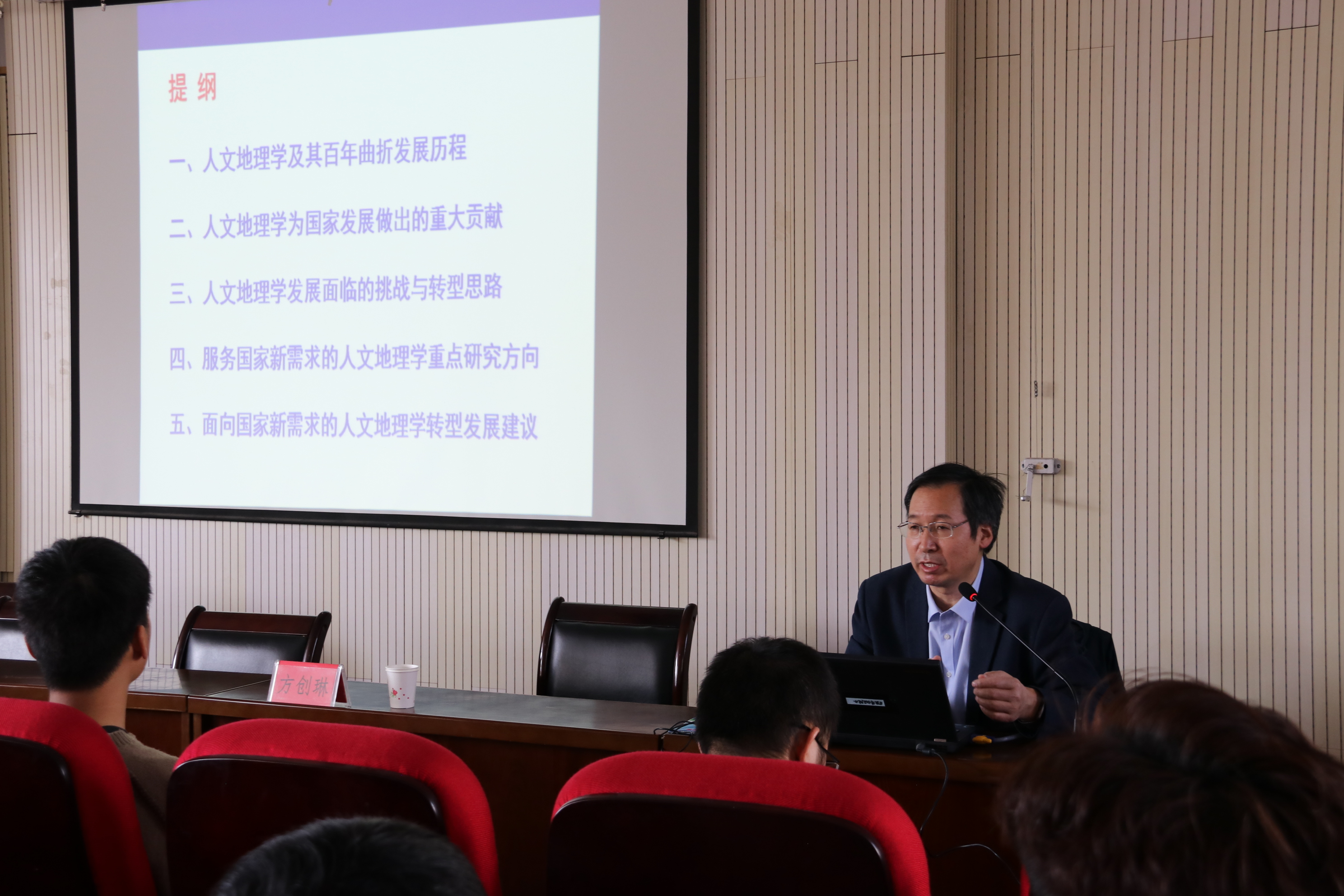 3月4日下午,中国科公司地理科学与资源研究所研究员方创琳研究员应邀来公司作题为《中国人文地理学百年发展与转型》学术报告,讲座由经理刘小鹏教授主持,公司教师和研究生聆听报告。