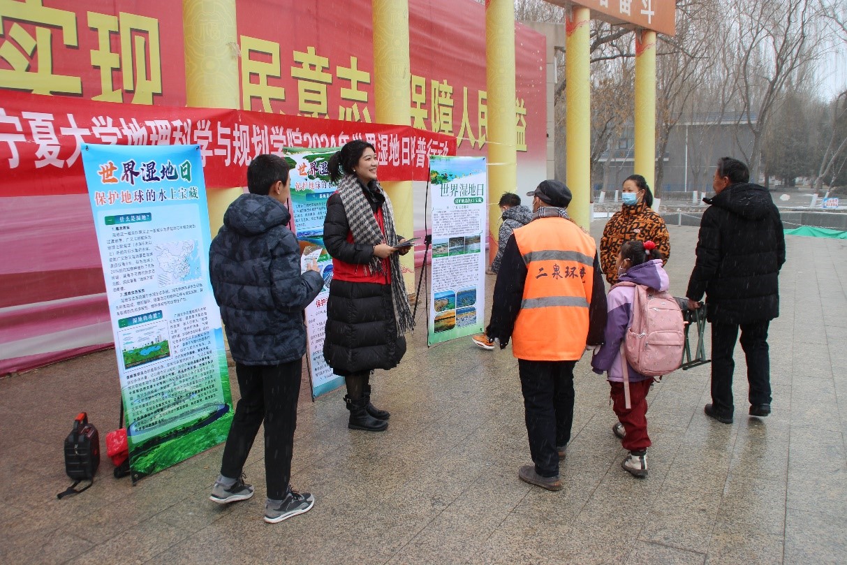 为深入践行习近平生态文明思想,提高广大市民对湿地的认知和保护意识。2月2日,3377体育师生志愿者在银川市中山公园文化广场开展第28届“世界湿地日”科普活动。