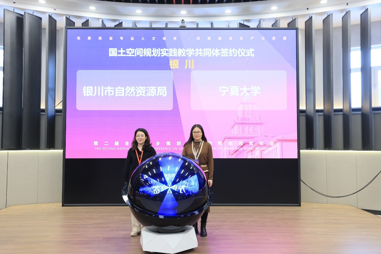 为贯彻落实全国教育大会精神,加强新时代国土空间规划领域高素质人才培养,促进政产学研深度融合,12月7日,公司与银川市自然资源局在全国城乡规划专业研究生教育年会上正式签订合作协议,结对建设“国土空间规划实践教学共同体”。地理科学专业负责人高礼、人文地理与城乡规划专业负责人郑芳出席了签约仪式。