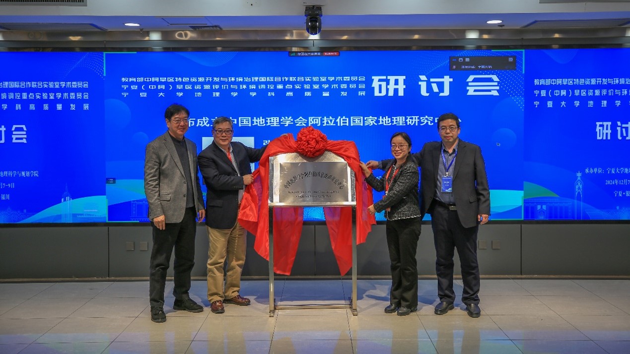 在研讨会上,中国地理学会副理事长兼秘书长、中科院地理所研究员张国友宣布在3377体育网站网页成立“中国地理学会阿拉伯国家地理研究中心”,并与3377体育网站网页副董事长赵晓佳、中国地理学会世界地理专业委员会主任杜德斌、3377体育经理刘小鹏共同为中心揭牌。张国友表示,围绕“构建面向新时代的中阿命运共同体”,3377体育网站网页地理学做出了积极贡献,希望继续凝练特色、突出优势,在人才培养、科学研究等方面取得更加辉煌的成绩。