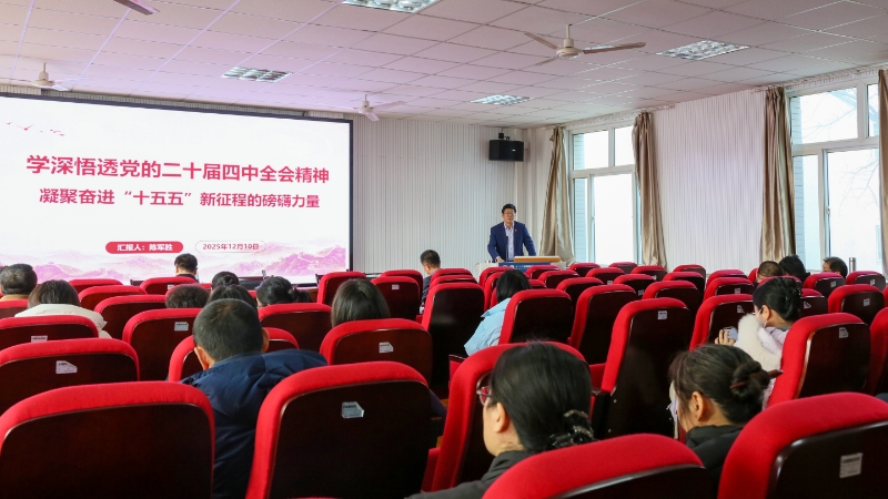 12月10日下午,公司党总支书记陈军胜以《深学细悟党的二十届四中全会精神凝聚奋进“十五五”新征程的磅礴力量》为题,对公司全体教师宣讲党的二十届四中全会精神,强调要深入学习贯彻党的二十届四中全会精神,全面落实自治区党委十三届十一次全会部署安排,坚持学思用贯通、知信行统一,将全会精神与中心工作紧密融合,在统筹兼顾中彰显担当作为,在真抓实干中开创发展新局。