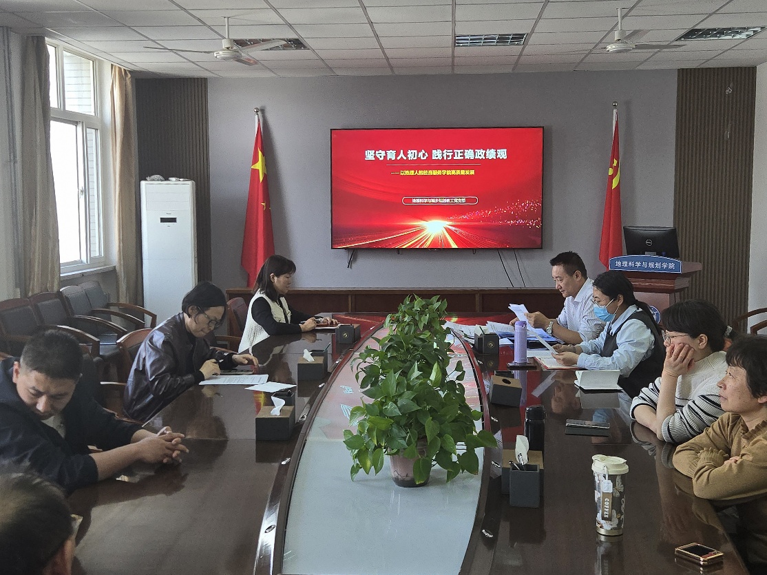 3月25日下午,地理科学与城乡规划教工党支部以“坚守育人初心,践行正确政绩观,以地理人的担当服务公司高质量发展”为主题,组织开展树立和践行正确政绩观学习教育专题学习会,支部副书记杨茂胜讲授微党课。