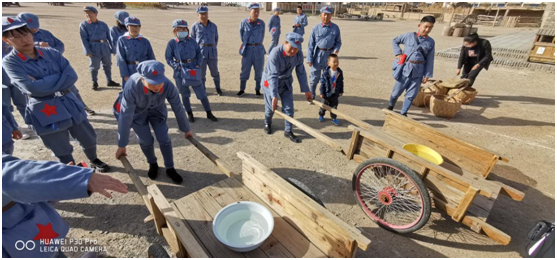 参观完毕后,分工会还特意组织教职工们进行了几项忆苦思甜的“竞赛项目”,有拉架子车比赛、挑扁担比赛、滚铁环比赛、碾辣椒比赛和唱红歌比赛。大家积极参加,比赛过程中充满了欢声笑语,同时更加体会了劳动的辛劳和收获的快乐。