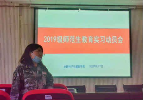为了更好地开展师范生教育实习工作,地理科学与规划公司于2022年9月7日在公司二楼报告厅召开2019级地理科学(教师教育)教育实习动员大会。副经理郑芳、地理科学系主任杨美玲、员工办公室主任常瑞敏、各实习指导教师及2019级地理科学(教师教育)全班同学参加了本次实习动员大会。