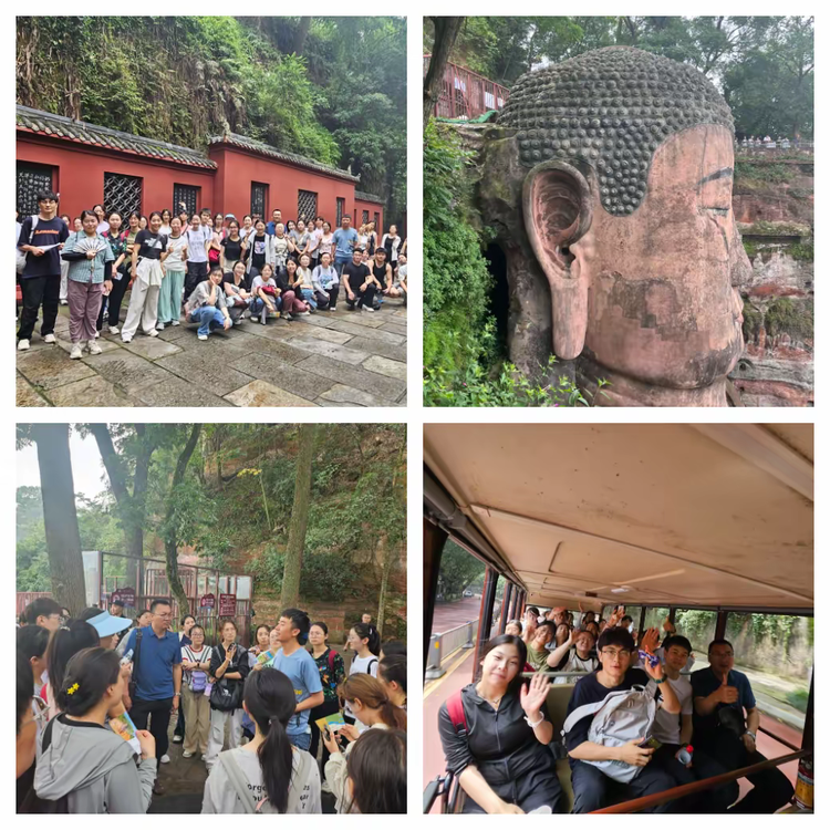 7月11日,师生前往乐山大佛景区,亲临大佛耳边、脚下,感受大佛的雄伟壮观以及古代工匠们的智慧与精湛技艺。在这里,师生详细了解了乐山大佛的历史由来,看到了大佛背后所蕴含的地理知识,如“大佛要洗脚,乐山睡不着”等。这座大佛不仅是乐山的文化象征,也是乐山洪水灾情的警世钟。