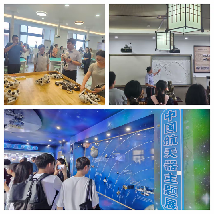 在航天二中,师生们共同参观了公司的地理特色教室、历史教室、书法教室、机器人教室、天文馆、图书馆等优质的教学设施,观摩了一节别开生面的高中地理观摩课,并与航二的老师针对这节课进行了课堂设计的评价与交流,航天二中的优秀地理教师也毫无保留的把自己的教师成长历程与经验分享交流给同学们。