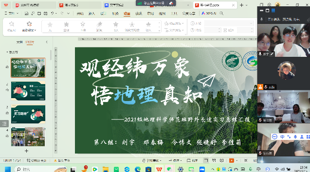 7月18日,2021级地理科学(师范)专业的学子们圆满完成了历时16天的长途综合野外实习。由于有部分员工已返回家乡,实习总结大会通过腾讯会议召开。线上进行实习总结汇报,旨在回顾复盘整个实习历程,总结凝练此次实习实践的学习成果。