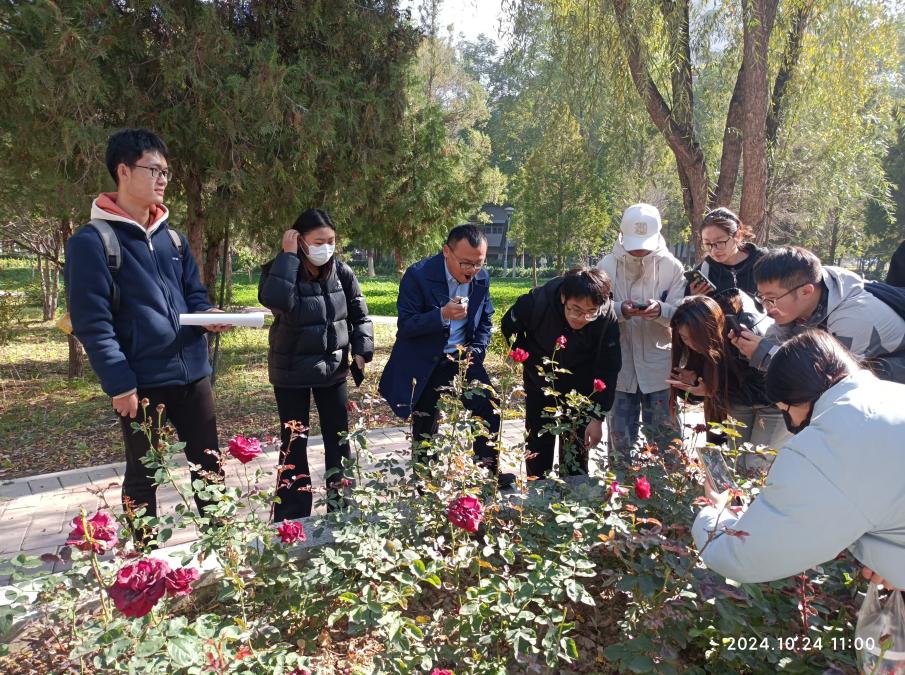 10月24日,何俊、李茜老师带着同学们在公司三个校区开展了以“探索植物世界 认识校园植物”为主题的课程实践。“玫瑰和月季都是蔷薇科的植物,玫瑰的叶片表面是褶皱的,月季的叶片表面是非常光滑的;月季的刺相对较大,而且比较稀疏,玫瑰枝干上的刺比较小,更加密集;月季的花色更加丰富-----”同学们仔细聆听着何俊老师讲解校园里的植物,将植物地理知识带到周围每一株植物,赋予课堂别样的生趣。