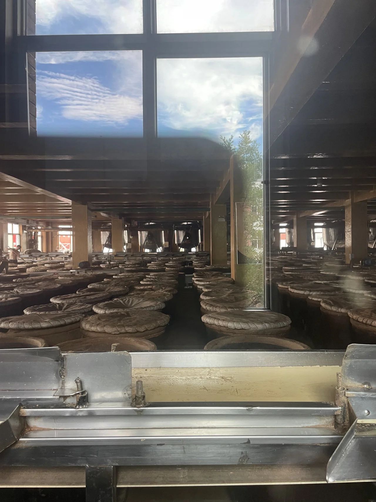 8月10日下午,实习队伍前往汾酒文化产业园进行参观学习。汾酒博物馆通过系统性的展陈,梳理了汾酒从古代酿造作坊发展为现代国有企业的历程,折射出地方特色产业的形成与演变。馆藏包括历代酒器酒具、传统酿造工具及文献资料,呈现出汾酒在文化传承、工艺演进与品牌塑造方面的历史脉络。同学们在参观过程中注意到,汾酒构建了涵盖酿酒高粱种植、白酒生产、酒糟综合利用(如饲料加工和沼气发电)的生态循环产业链,体现出传统酿造系统中所蕴含的资源循环利用智慧。同时,博物馆中展出的各类特色酒品,如汾酒、竹叶青、玫瑰汾酒等,以及从史前至近现代的一系列饮酒器具,不仅反映出汾阳地区饮食文化的演变,也从一个侧面展示了当地手工业与制造业的发展历程。