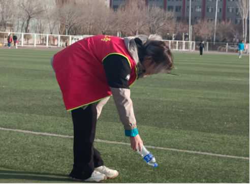 志愿者们身穿红色马甲,走进校园,将草坪上的塑料瓶、卫生纸等垃圾一一清扫。经过大家的共同努力,校园环境焕然一新,志愿者也露出了开心的笑容。