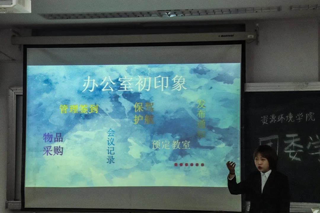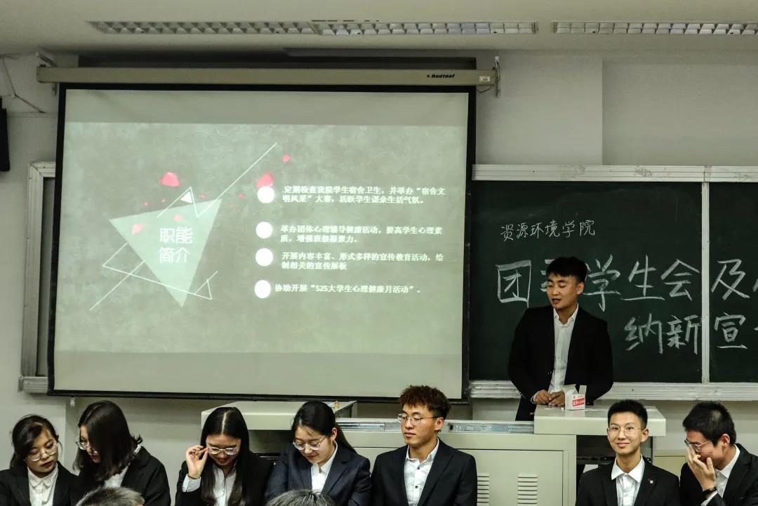会议伊始,员工会办公室主要负责人王怡雯向同学们做公司团委员工会及易班中心的总体介绍。从最初的迎新到前不久刚刚结束的军训再到日常生活的方方面面,同学们对公司团委员工会及易班中心有了初步印象。本次宣讲中,各部门融合PPT和纳新视频,生动形象地向公司2020级新同学展现了部门的职能与文化特色,将官方与幽默相结合,引起学弟学妹们的阵阵欢笑与掌声。