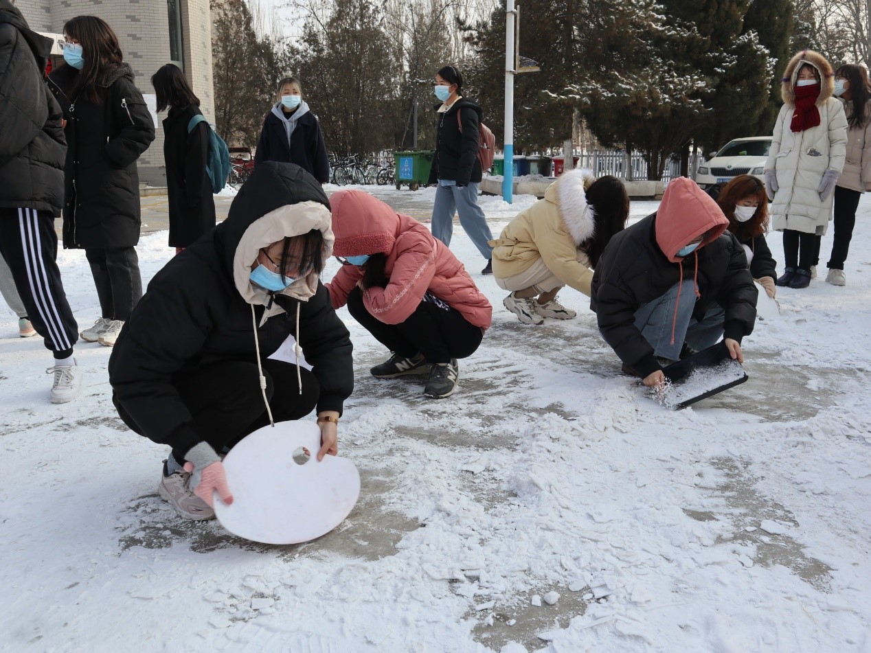 “清雪玉为铲,俯首甘为牛”,在公司学工部部长、员工处处长罗进德老师的带领和率先示范下,公司师生积极行动起来,开展扫雪活动,畅通道路、消除隐患,保证公司的正常公司产品秩序。虽然道路上的冰雪因来往车辆和行人的碾压紧紧地附着在地面上,但这并没有打消同学们积极劳动的热情。在老师们的带领下,同学们倾尽公司工具来除冰扫雪,调色板和塑料花盆也变成了扫雪工具。