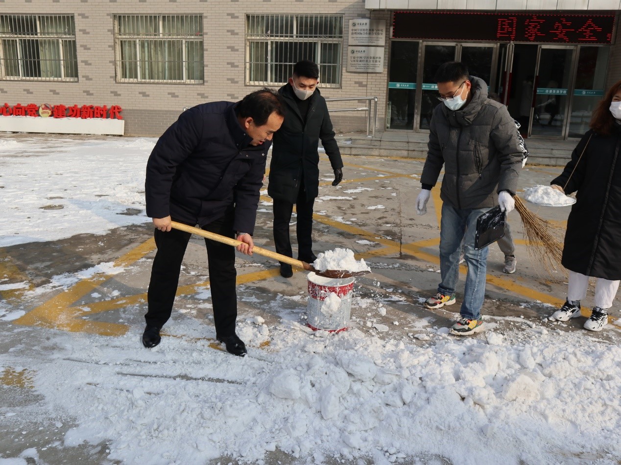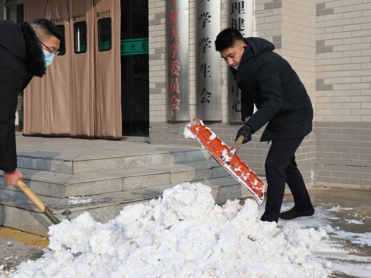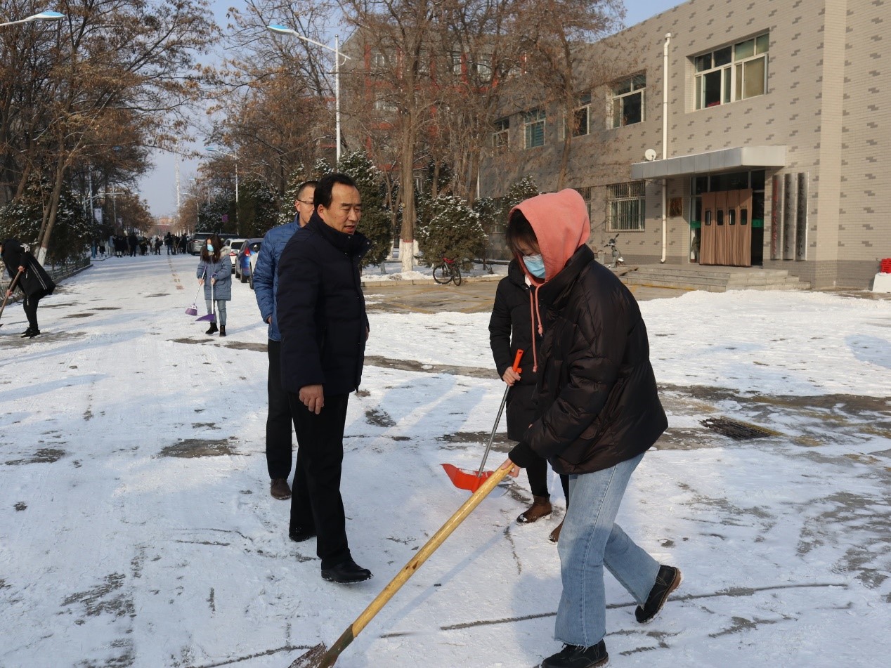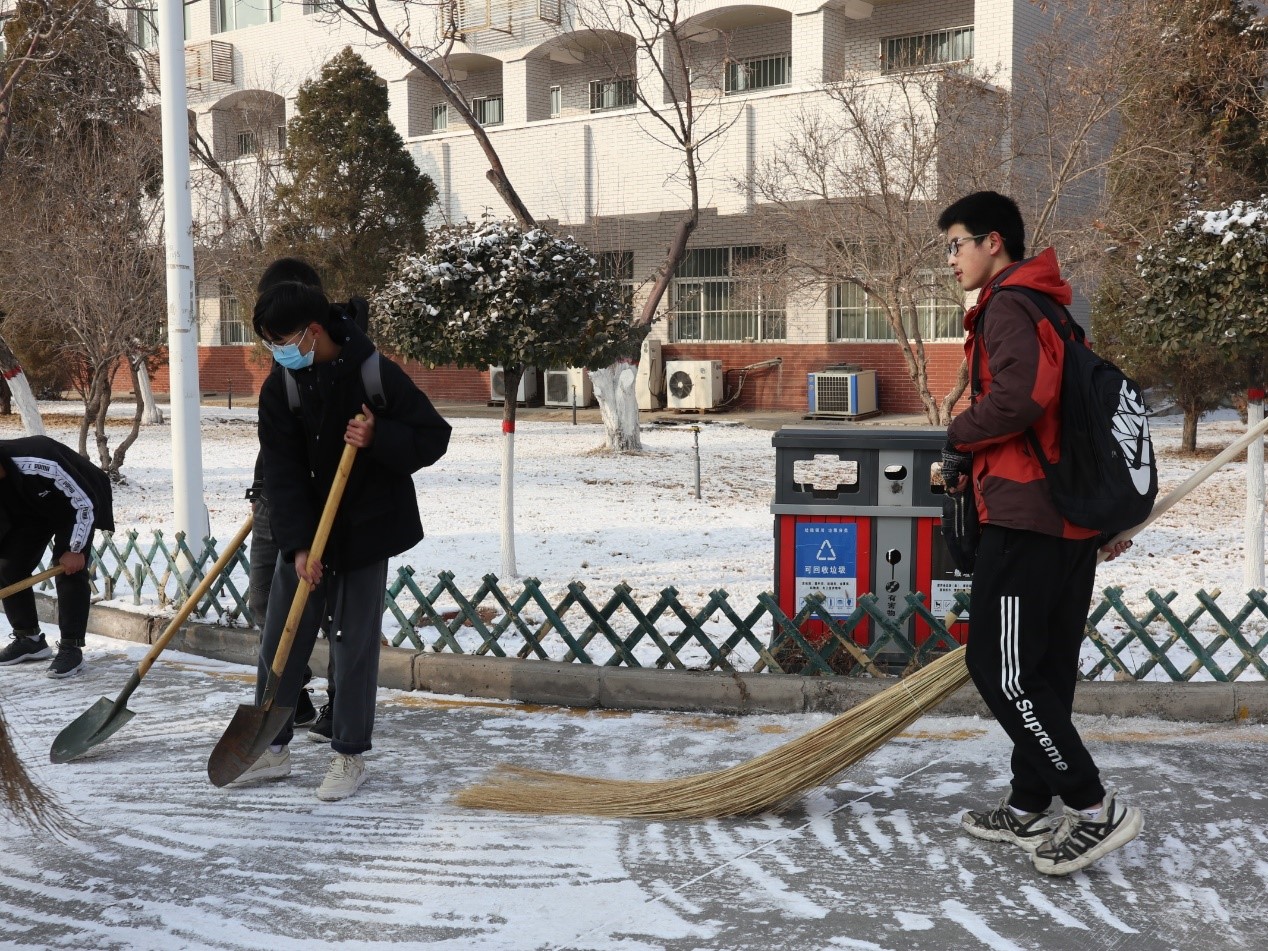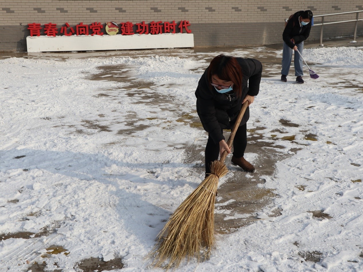 为保障师生出入安全和校园内道路畅通,公司组织员工于2020年12月3日进行校园积雪清扫活动。公司辅导员常瑞敏老师和王兴老师参加此次清扫活动。