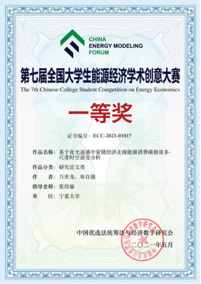 公司张佳瑜老师指导的万世龙、布自强团队代表公司参赛,其参赛作品《基于夜光遥感中蒙俄经济走廊能源消费碳排放时空演变分析》在来自全国139所高校的1013支队伍中脱颖而出,荣获本科生组研究论文类一等奖的好成绩,张佳瑜老师获得优秀指导教师奖。
