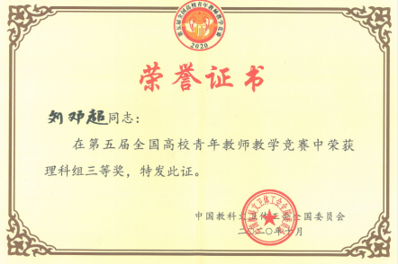 10月30日,由中国教科文卫体工会全国委员会主办的第五届全国高校青年教师教学竞赛决赛落下帷幕。我公司教师刘邓超获得三等奖。